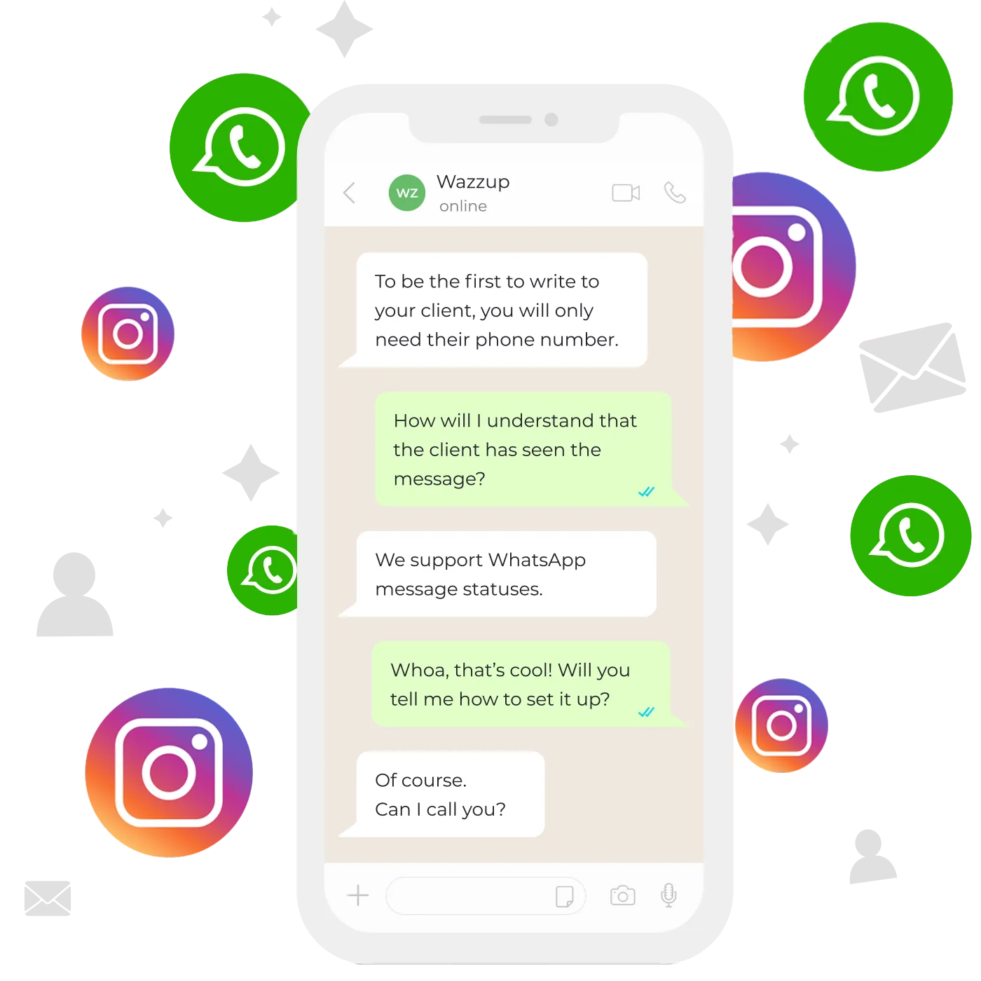 O WAZZUP oferece acesso aos dois aplicativos em um só lugar, o que significa que você pode enviar e receber mensagens pelo WhatsApp e Instagram diretamente do sistema CRM Bitrix24, seja pelo seu computador ou celular.